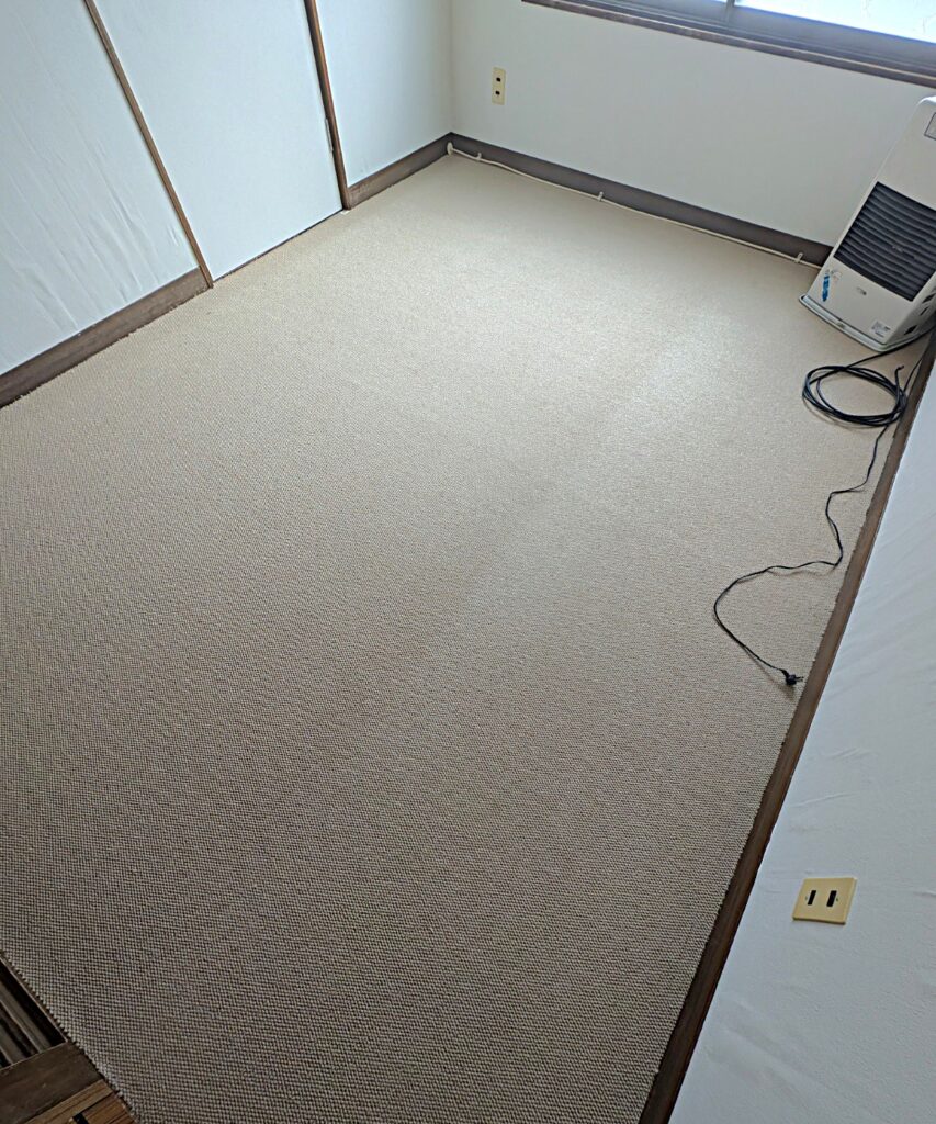 グループホームのクロスとカーペットを一新させていただきました。防炎ラベルも当店で対応しております。